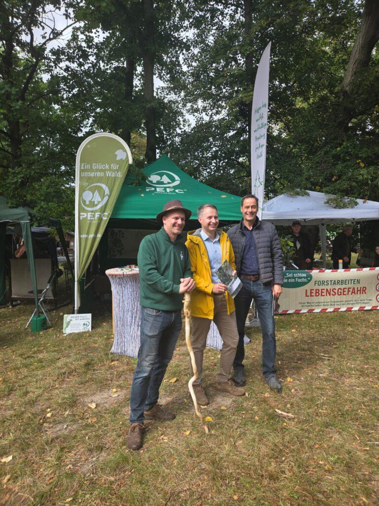 Bereits ein Wochenende später am 20.09. war unser Verband, wieder gemeinschaftlich mit PEFC, auf dem 7. Thüringer Waldgipfel im Rahmen der PEFC-Waldhauptstadt 2025 auf dem Gelände der Firma Pollmeier Massivholz präsent. Bei dieser Veranstaltung lag der Fokus vor allem auf Info- und Aktionsständen der Waldsprecher mit Partnern aus dem Cluster Forst & Holz und den Bereichen Bildung, Gesundheit, Sport und Umwelt. Weitere Informationen zu den Thüringer Waldsprechern finden sie hier: Startseite Waldsprecher Thüringen: ThüringenForst » Waldsprecher Thüringen.